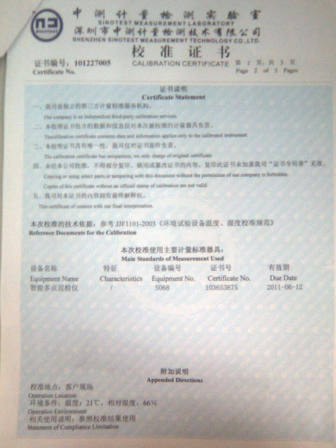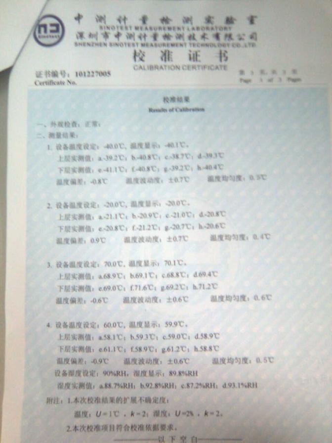 高低溫濕熱試驗(yàn)箱校準(zhǔn)證書(shū)-深圳中測(cè)計(jì)量-深圳精銳通