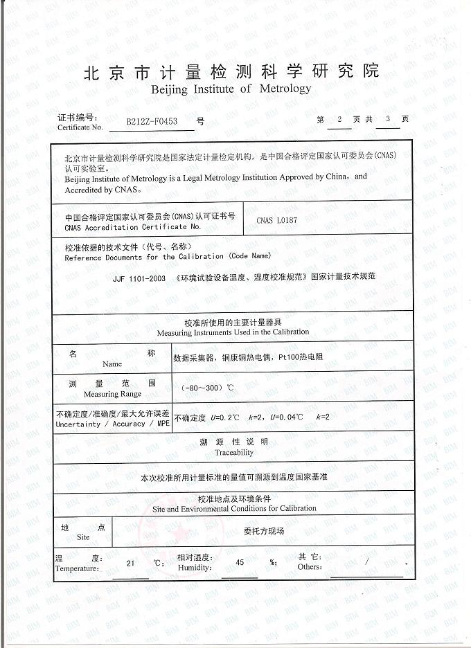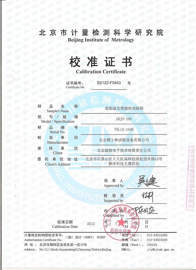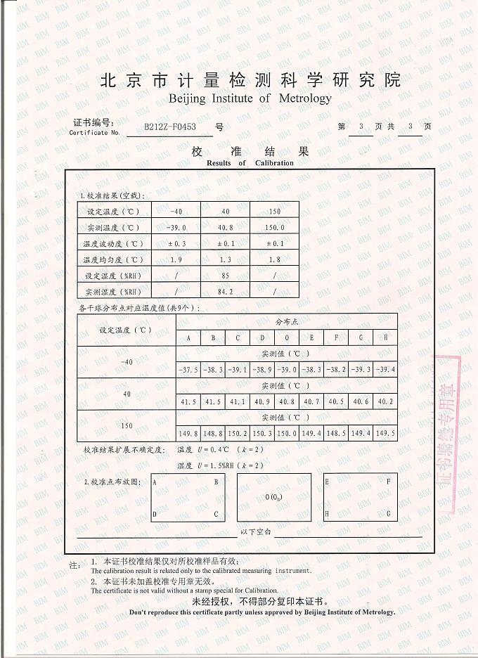 高低溫交變濕熱試驗(yàn)箱校準(zhǔn)證書-北京計(jì)量院-超思電子