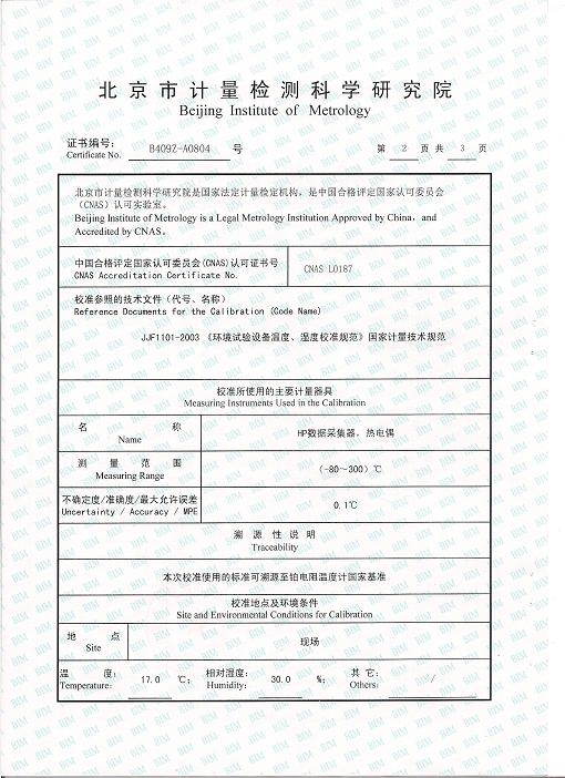 ·高低溫交變濕熱試驗(yàn)箱校準(zhǔn)證書-北京計(jì)量院-拉特激光