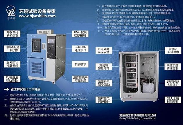 寶劍鋒從磨礪出,梅花香自苦寒來(lái)。雅士林儀器持續(xù)創(chuàng)新,開(kāi)發(fā)最前沿的測(cè)試技術(shù),使雅士林的產(chǎn)品肯有更加大的生命力。雅士林儀器定位于中高端客戶群,高品質(zhì)、高性能高低溫交變濕熱試驗(yàn)箱系列的產(chǎn)品特點(diǎn): 1、擁有外觀設(shè)計(jì)專利,數(shù)控機(jī)床剪折、激光開(kāi)孔,結(jié)構(gòu)設(shè)計(jì)合理,新穎美觀。 2、擁有自主知識(shí)產(chǎn)權(quán)和計(jì)算機(jī)軟件著作權(quán),掌握超低溫制冷、溫度自動(dòng)補(bǔ)償加熱、淺槽加濕等環(huán)境試驗(yàn)核心科技。 3、控制系統(tǒng)采用日本進(jìn)口優(yōu)易控UMC系列7英寸高清真彩液晶觸摸顯示屏,溫度控制采用P•I•D+S•S•R系統(tǒng)同頻道協(xié)調(diào)控制,自動(dòng)演算的功能,支持電腦實(shí)時(shí)監(jiān)控、歷史曲線回放、程序編輯、遠(yuǎn)程診斷等功能。 4、制冷系統(tǒng)采用原裝法國(guó)泰康壓縮機(jī)組,制冷劑采用美國(guó)杜邦品牌,制冷效果強(qiáng)勁,性能穩(wěn)定。 5、電氣系統(tǒng)核心電氣元器件均采用施耐德、歐姆龍等進(jìn)口知名品牌。 6、加濕系統(tǒng)采用國(guó)際流行的淺槽式加濕方式,加濕效果及濕度控制更精準(zhǔn)。 7、照明系統(tǒng)采用飛利浦套件,觀測(cè)窗采用漏斗形設(shè)計(jì),觀測(cè)視野更開(kāi)闊。 8、抽屜式加水方式,超大水箱設(shè)計(jì),持續(xù)試驗(yàn)時(shí)間更長(zhǎng)。 9、沿襲國(guó)外環(huán)境試驗(yàn)設(shè)備先進(jìn)設(shè)計(jì)理念,水路、電路完全分離,使用更安全。 10、獨(dú)有的漏電保護(hù)設(shè)計(jì),超溫、超壓、過(guò)載、過(guò)電流保護(hù),操作更安全。 11、標(biāo)準(zhǔn)化圖紙接線、焊接,三十五項(xiàng)嚴(yán)格檢驗(yàn)流程,確保設(shè)備質(zhì)量,無(wú)安全隱患。 12、專注于細(xì)節(jié),引線測(cè)試孔防銹設(shè)計(jì)、進(jìn)口硅橡膠密封條雙層密封、高品質(zhì)可固定式PU腳輪設(shè)計(jì)、工作室底部引流槽設(shè)計(jì)等。 全國(guó)免費(fèi)服務(wù)電話:4006 400 998 |