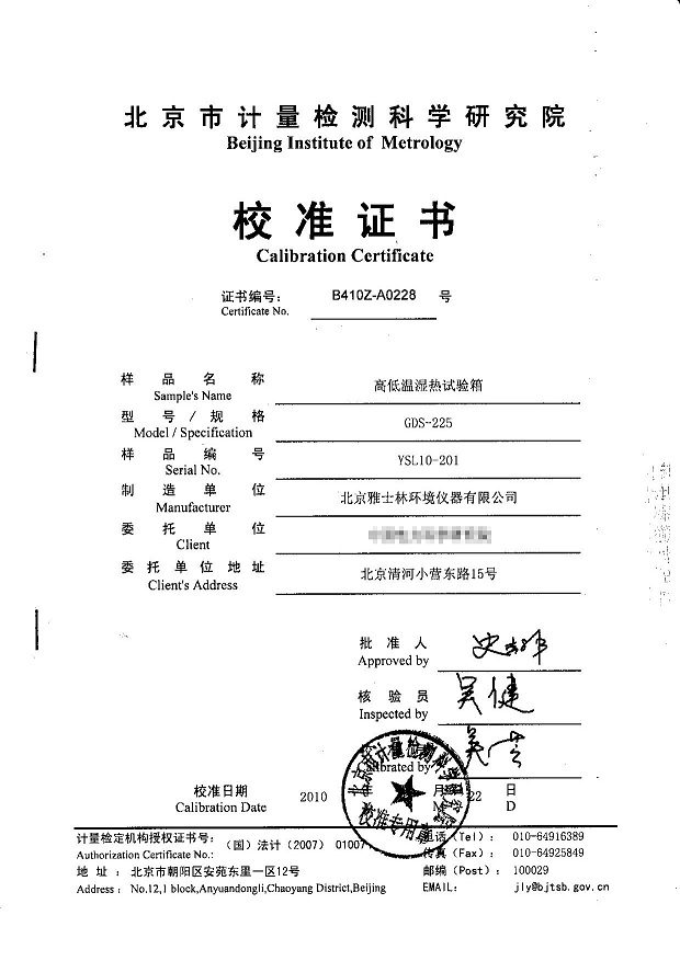 >>高低溫濕熱試驗(yàn)箱校準(zhǔn)證書模板下載—北京計(jì)量院