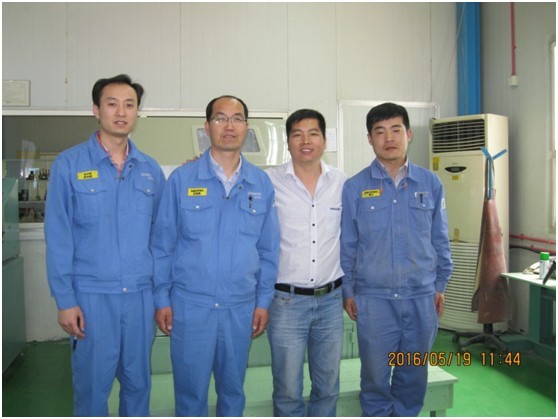 | 2016年5月19日上午,北京雅士林試驗設備有限公司調(diào)試員王工來到青島浦項不銹鋼有限公司,進行對鹽霧腐蝕試驗箱的最終驗收。經(jīng)過近一天緊張忙碌的操作培訓和測試,試驗箱各項指標都達到要求,鹽霧腐蝕試驗箱的驗收取得圓滿成功。