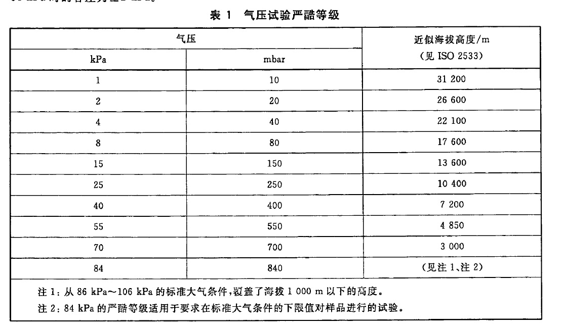 上圖是GB/T2423.21-2008中規(guī)定的氣壓試驗等級。地球大氣受重力作用,離地面越高,空氣越稀薄,氣壓也就越低。在標準大氣條件下,海平面氣壓約為 101.3kPa 。隨著海拔上升,氣壓呈非線性下降趨勢。這是因為大氣并非均勻分布,越往高空,空氣分子數量越少,分子撞擊物體表面產生的壓力也就越小。